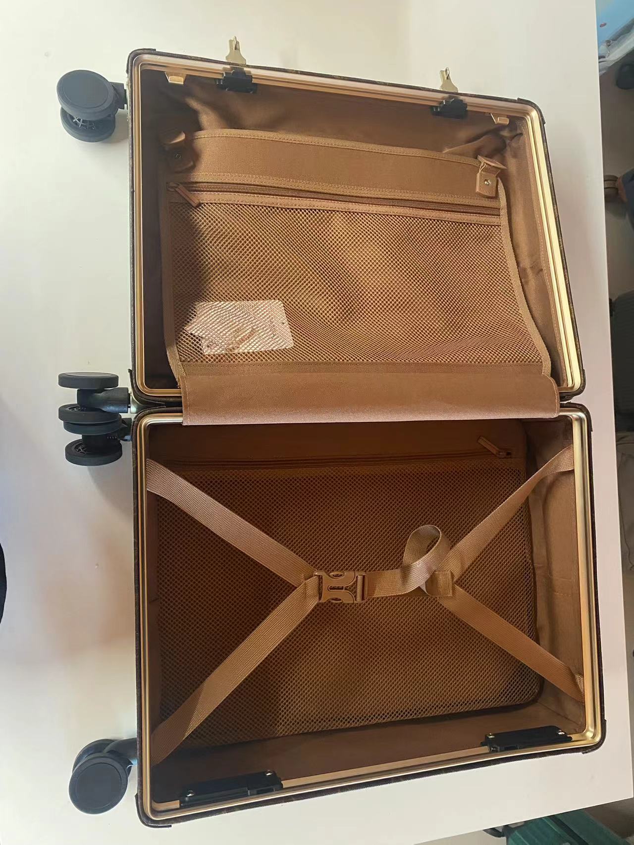 2、Leather trim and vintage aluminum frame: The corners, handles and details are all covered with high-quality leather, which not only adds a warm touch but also neutralizes the coldness of the metal through the natural luster of the leather.