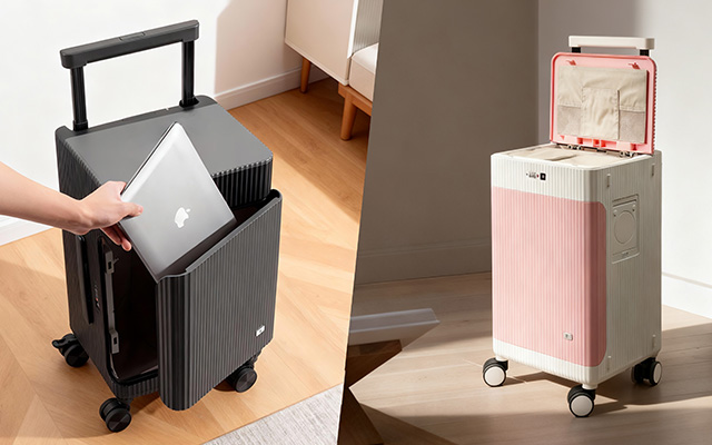 Modern Style Covestro PC Travel Suitcase Front Open Waterproof Oxford Lightweight Luggage with Expansion Layer&Cup Holder